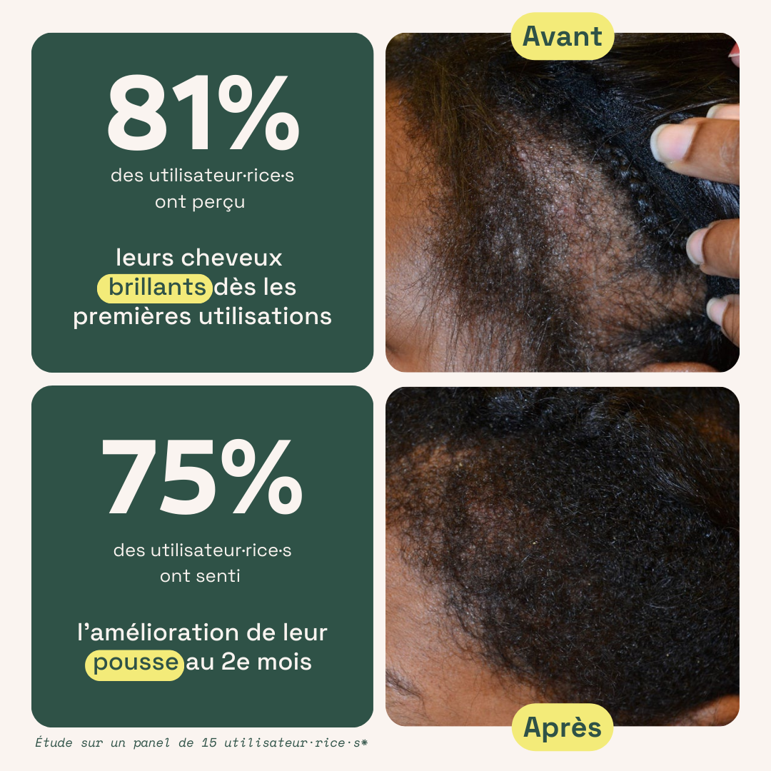 L’HUILE POUSSE est un concentré de bienfaits pour favoriser la croissance, protéger et renforcer vos cheveux.