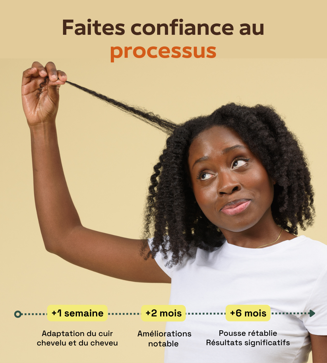 Résultats visibles dÚs 6 semaines : des cheveux plus denses, éclatants et pleins de vie.